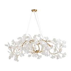 Lampa wisząca BOTANIKA złoto biała z ceramicznymi listkami 80 cm