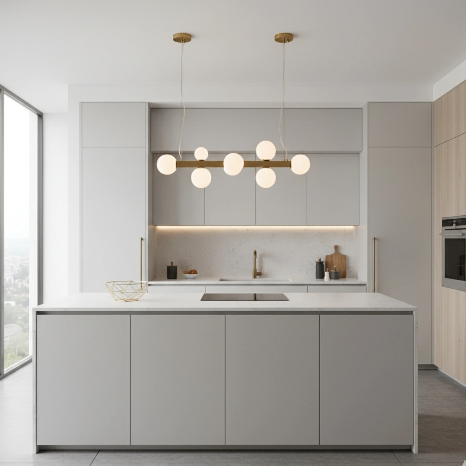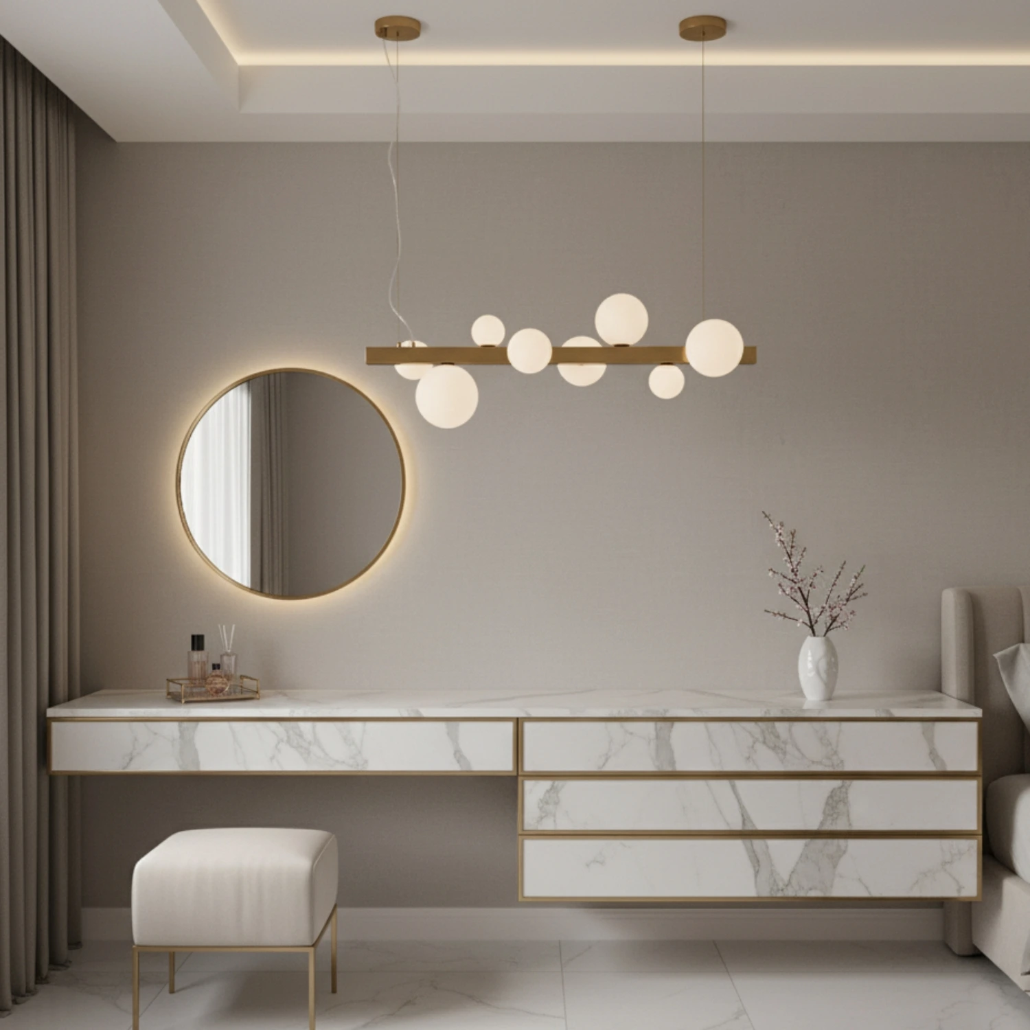 - Ciepłe światło: Mleczne klosze rozpraszają światło, co tworzy przytulną atmosferę.