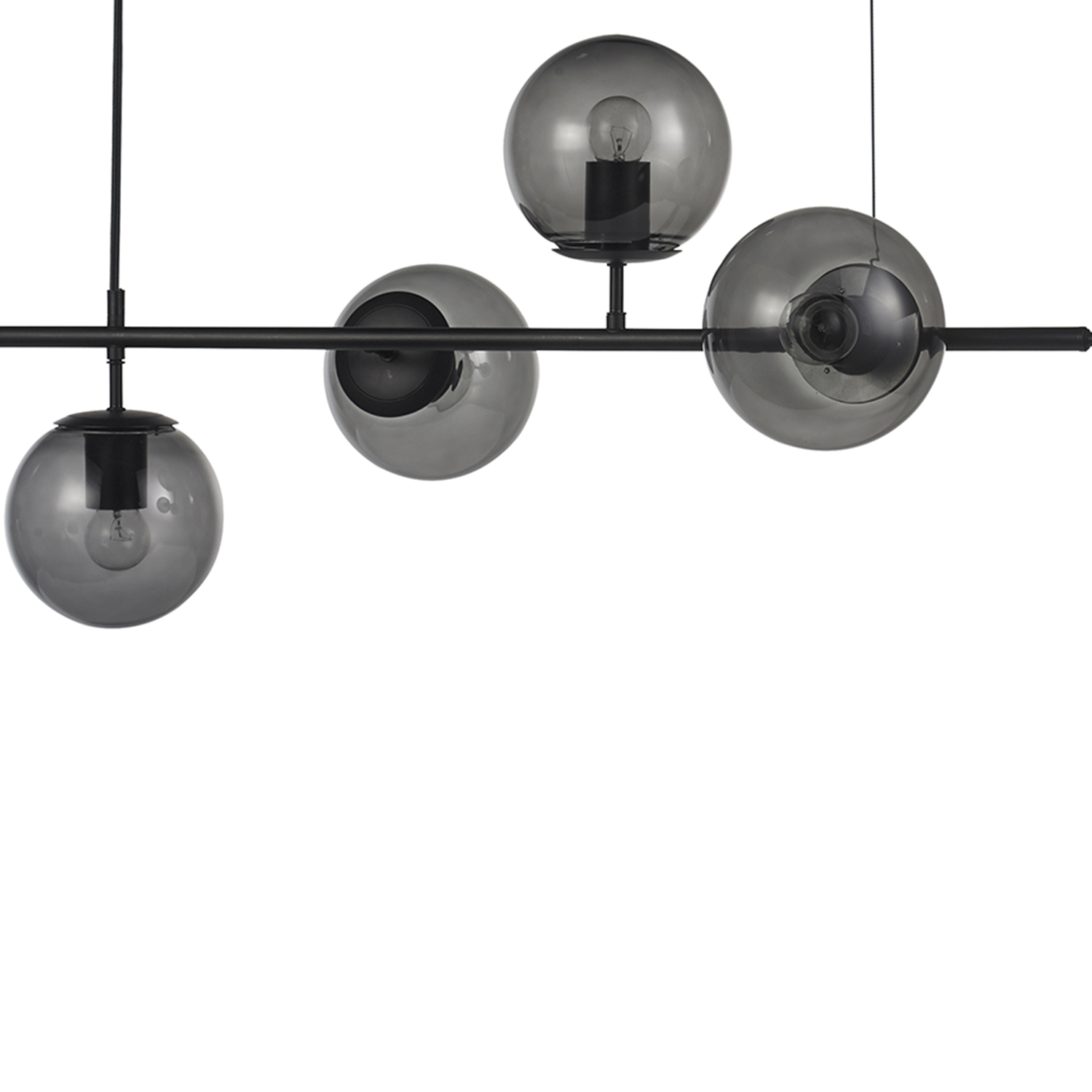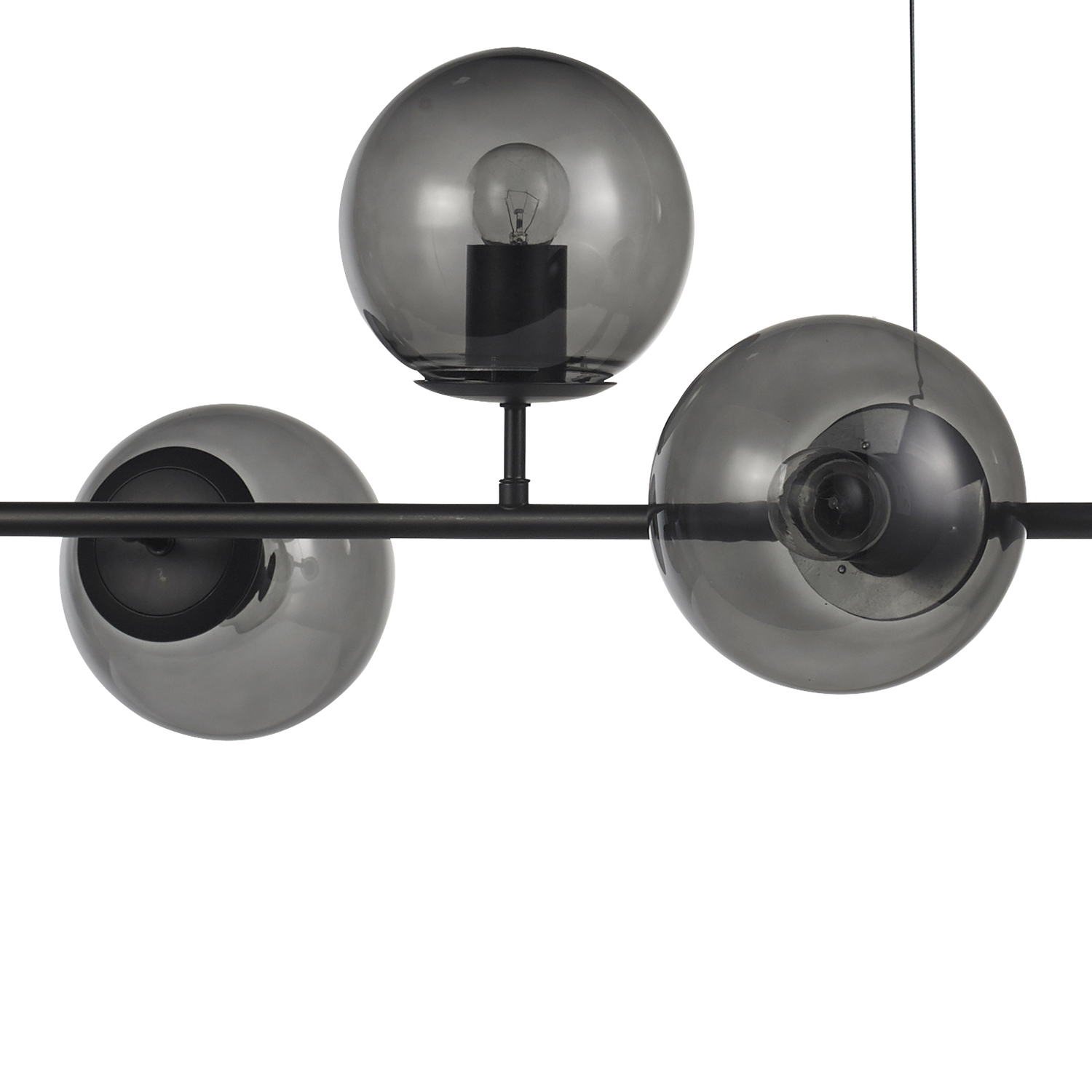 Lampa wisząca podłużna SISI czarna - dymione szklane klosze, do salonu