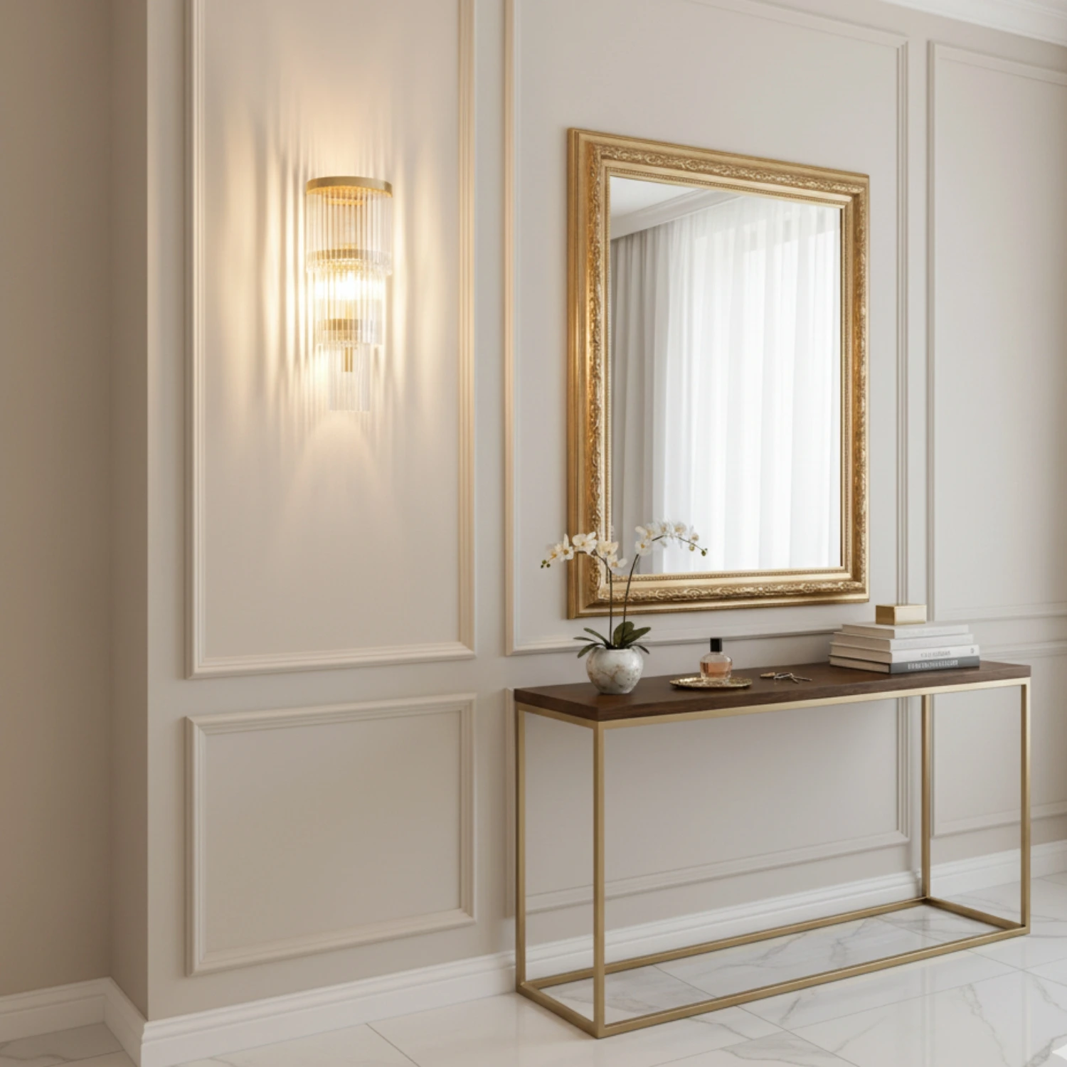 Materiał: przezroczyste pręty (szkło/akryl) + złote akcenty