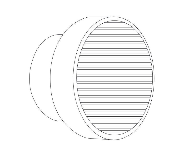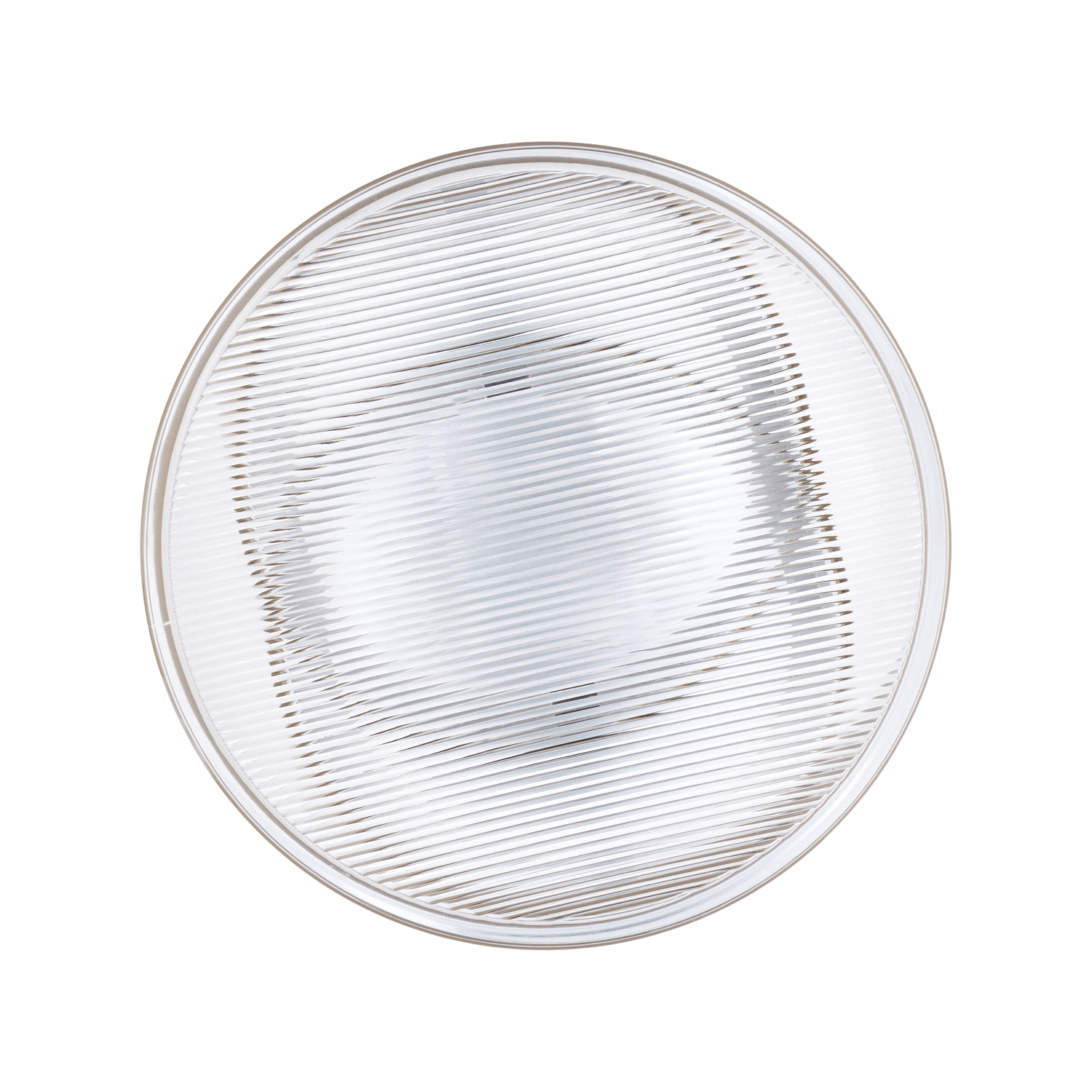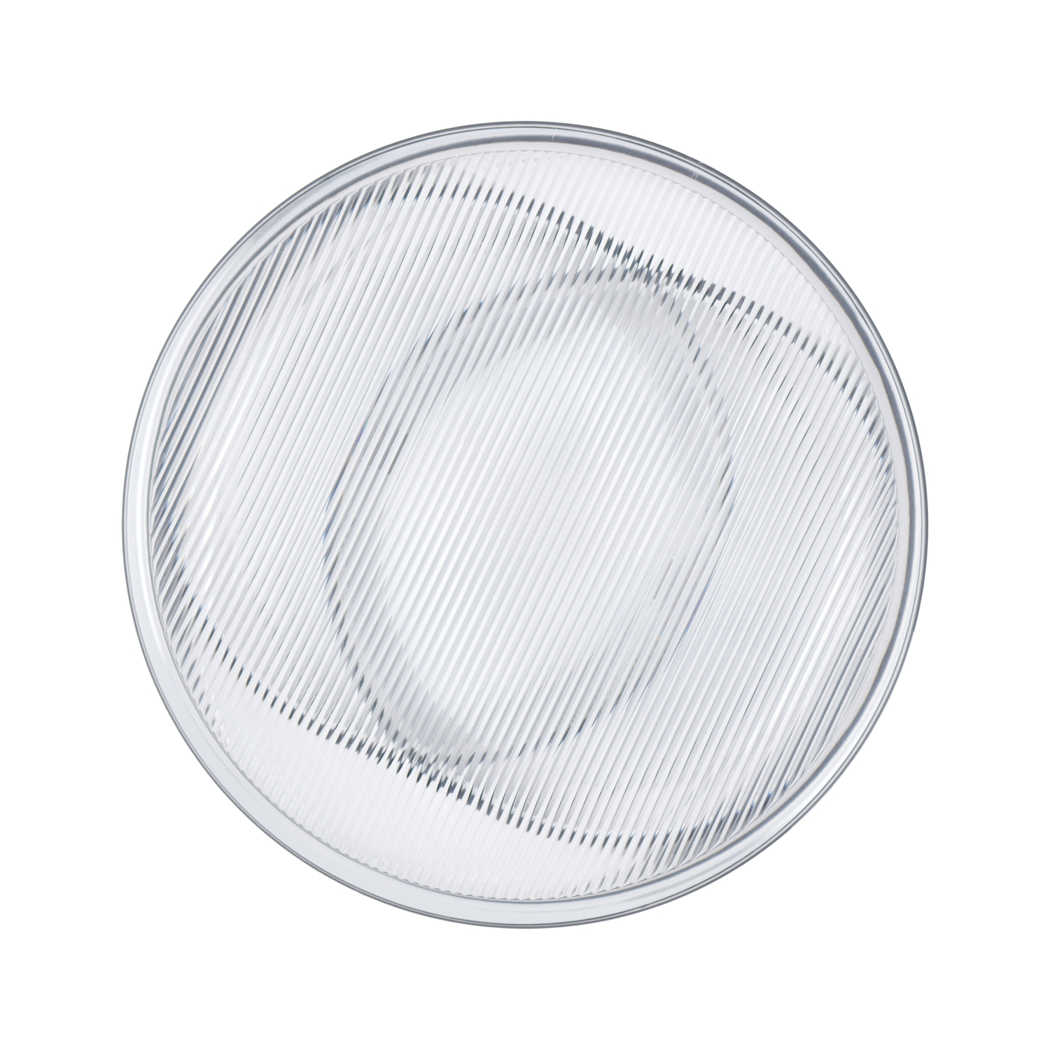 - Okrągły, transparentny klosz z pionową fakturą i matowym pasem