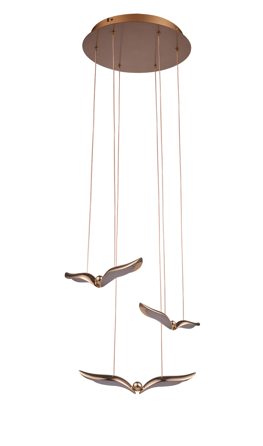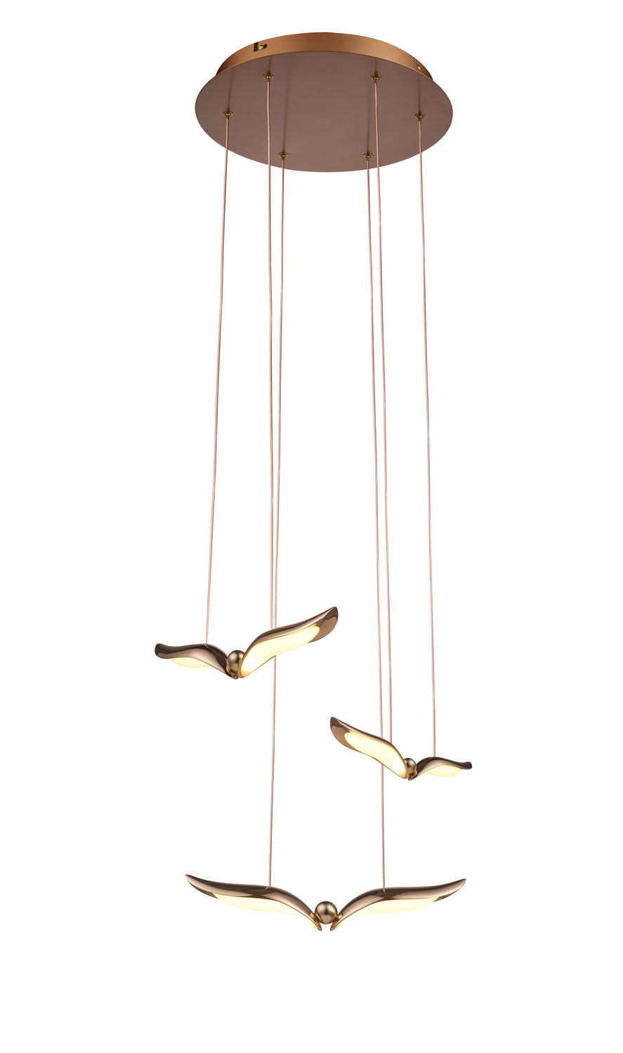 - Lampa wisząca GUFO 3 trzy złote ptaki w locie. Artystyczny design, subtelny blask LED. Idealna do nowoczesnego salonu i jadalni.