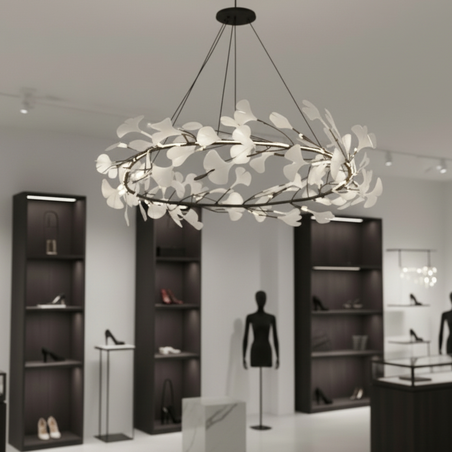 - Lampa BOTANIKA to elegancka lampa wisząca w stylu secesyjnym, z czarnym stelażem i ceramicznymi liśćmi. Idealna do salonu, jadalni i recepcji.