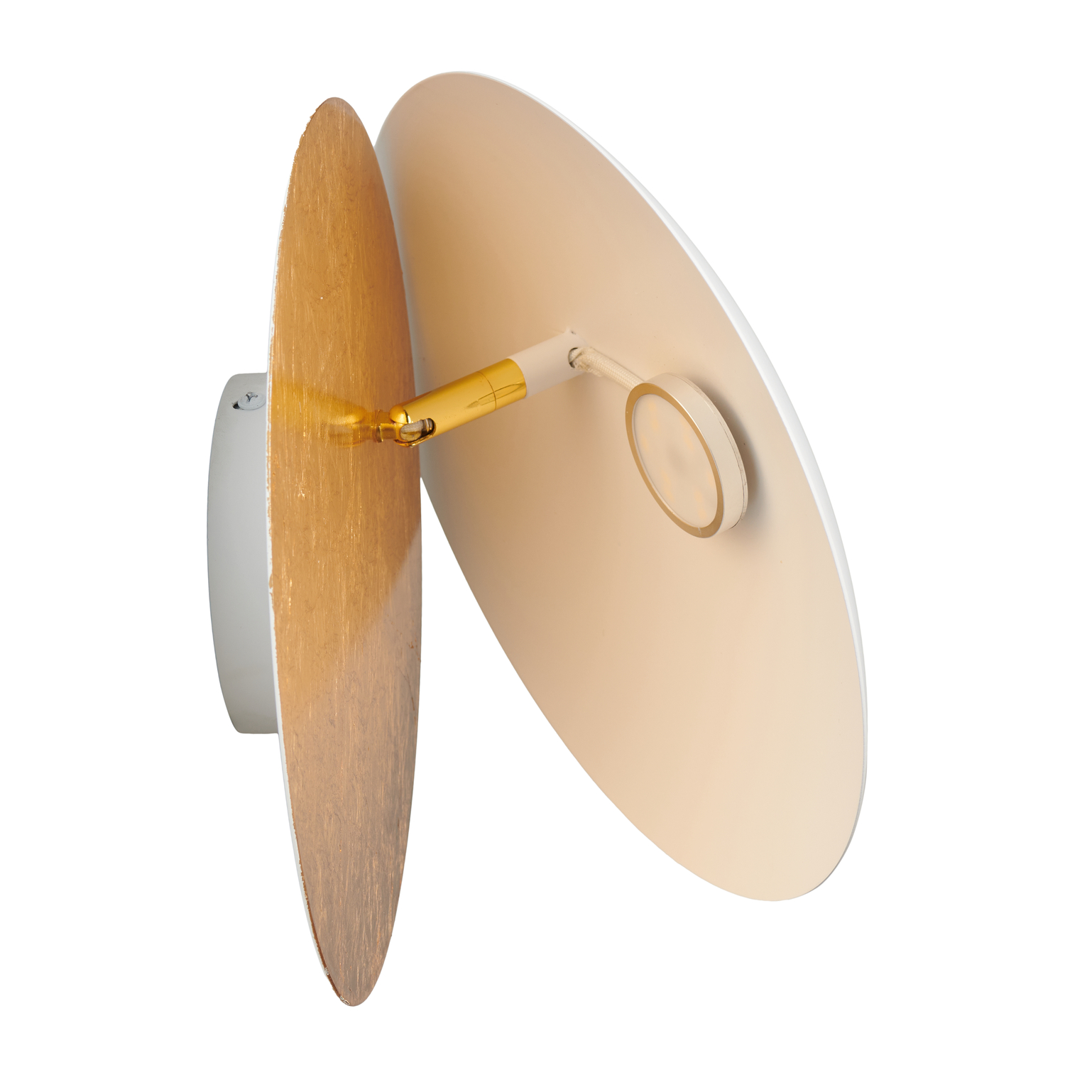 Elegancki kinkiet LED - połączenie bieli i złota. Idealny do salonu i sypialni.