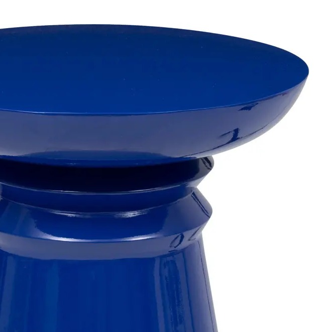 Stolik kawowy boczny JAYA - metalowy kolumnowy designerski, niebieski indygo wys. 43 cm