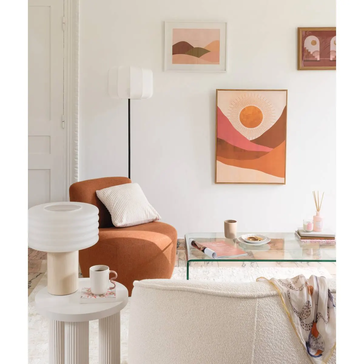 Blat o średnicy 40 cm wykonano z MDF pokrytego okleiną w ciepłym kremowym kolorze, co podkreśla elegancję stolika i sprawia, że idealnie komponuje się z wnętrzami utrzymanymi w tonacji boho, modern, japandi czy scandi. Całość tworzy harmonijny i przytulny akcent, który doskonale sprawdzi się zarówno w salonie, jak i w sypialni czy strefie relaksu.