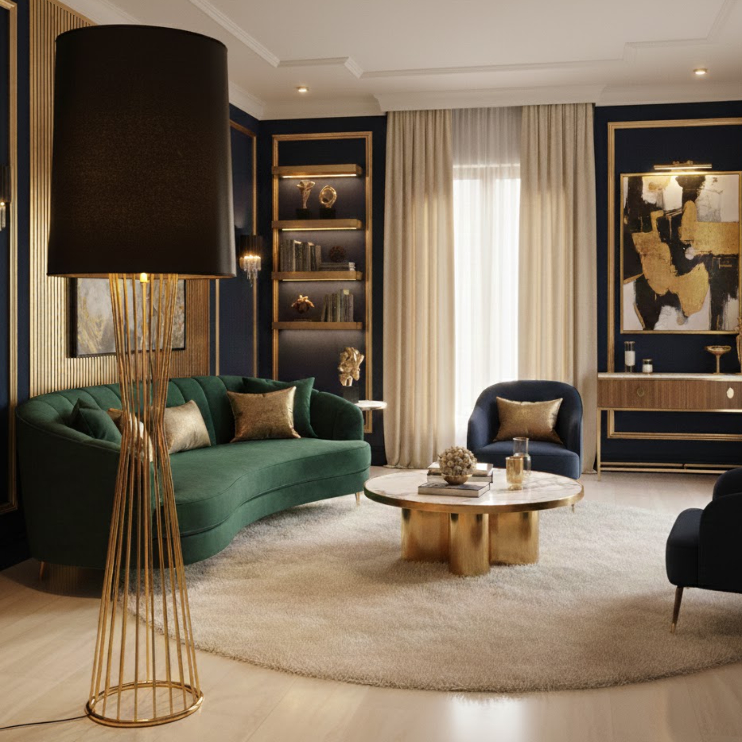 Klasyczne połączenie czerni i złota wprowadza do wnętrza luksusowy charakter i subtelną dekoracyjność.