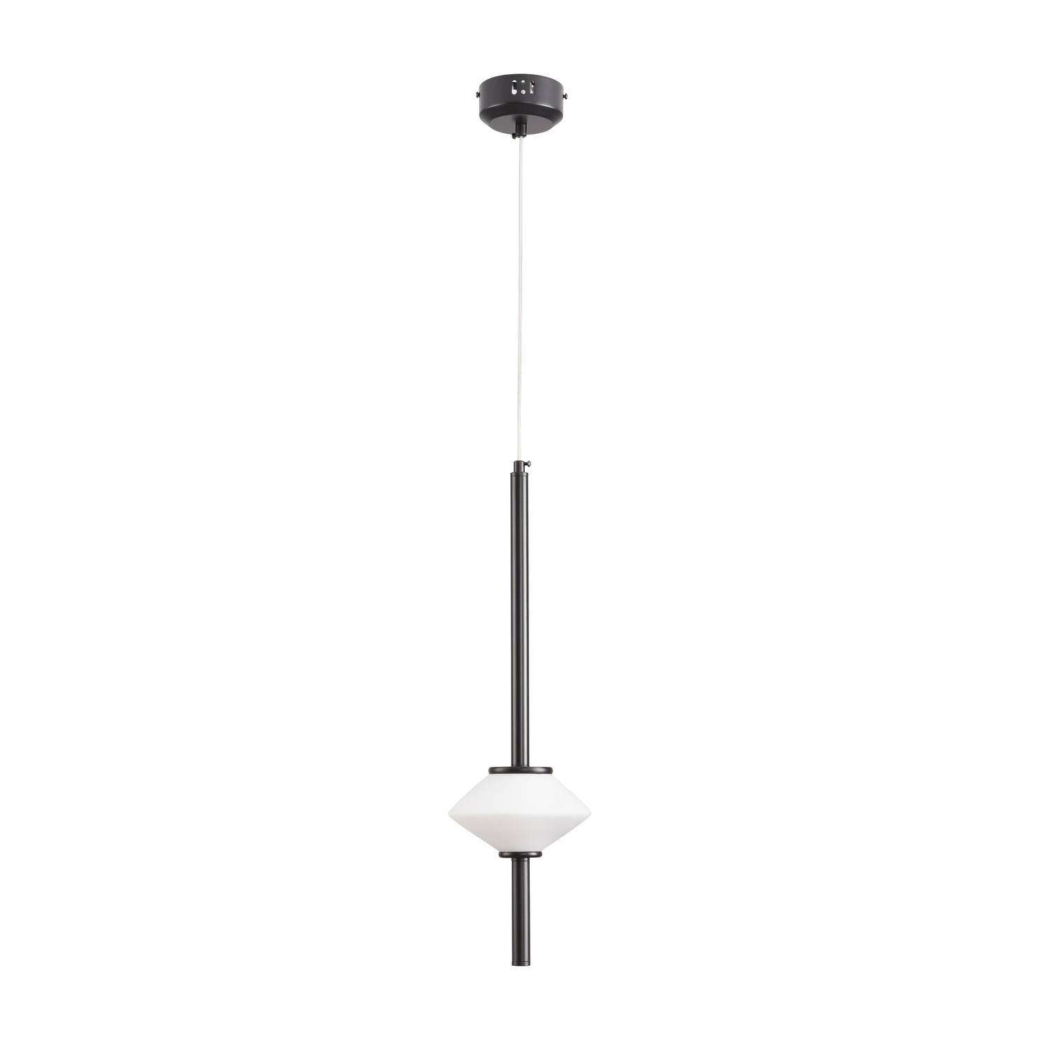 • Nowoczesna lampa wisząca o minimalistycznej, geometrycznej formie z białym kloszem i wbudowanym LED - dealna do stylowych, współczesnych wnętrz.